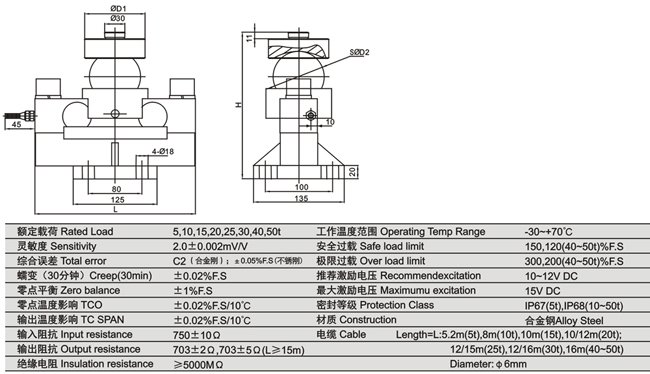產品名稱:橋式QS5-40t稱重傳感器