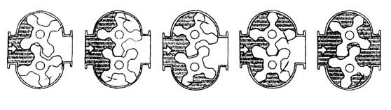 ZW-LXZ系列螺旋雙轉子流量計對流體流量的測定是在計量腔體內完成的。一對螺旋轉子在液體的壓力下轉動,轉子與計量腔壁間形成的封閉空間(圖陰影部分)每回轉一次排出8倍陰影體積。因此根據這一關系,只要計量轉子回轉的次數,即可計算出流量累積量,根據每秒的轉數,即可測出瞬時流量。