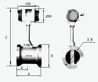 a、上、下游配管內(nèi)徑D和與傳感器內(nèi)徑DN相同,其差異滿足下述條件:0.95DN≤D≤1.1DN。